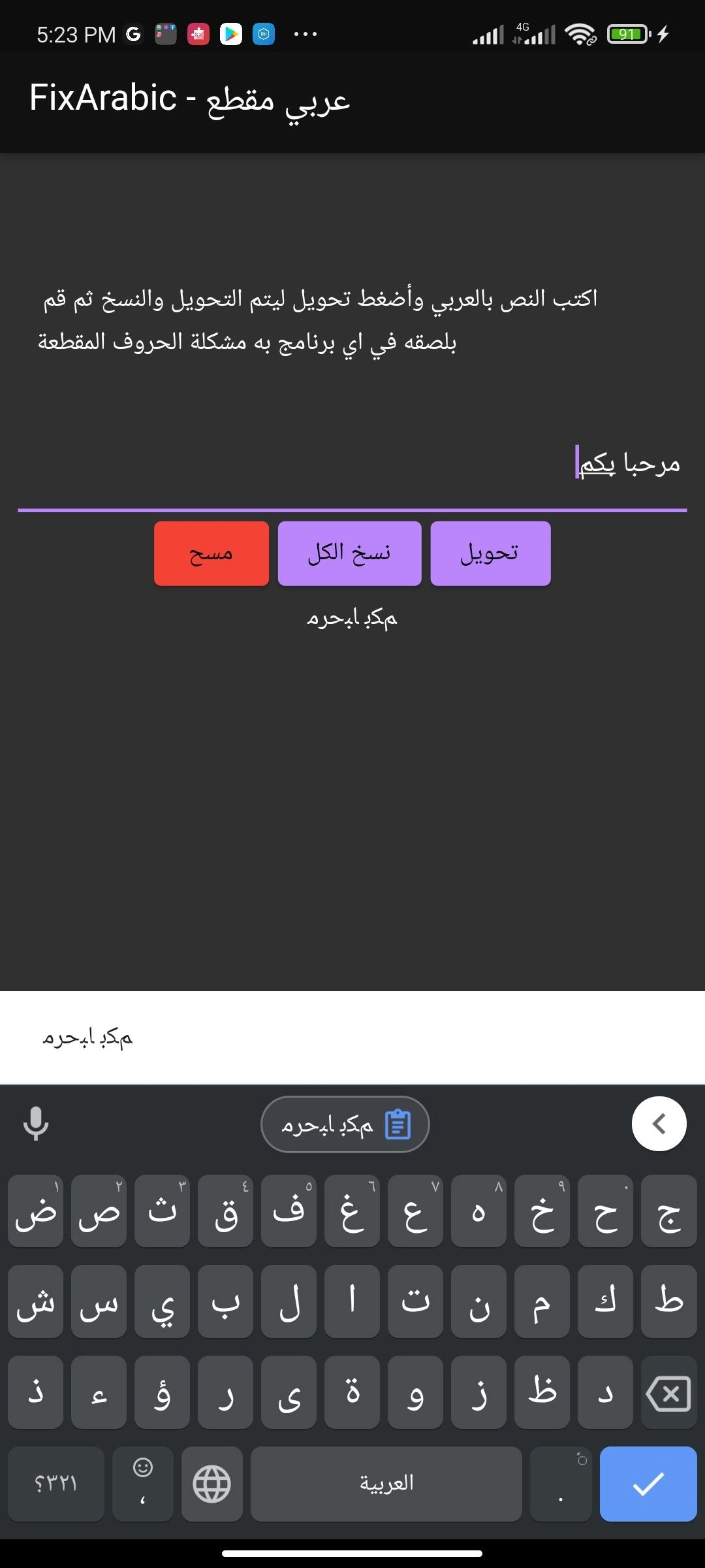 Re Arabic is a simple application that helps you to solve the problem of broken words in some programs and applications. Just write what you want and convert it and then paste it in any application that has a problem of punctuation