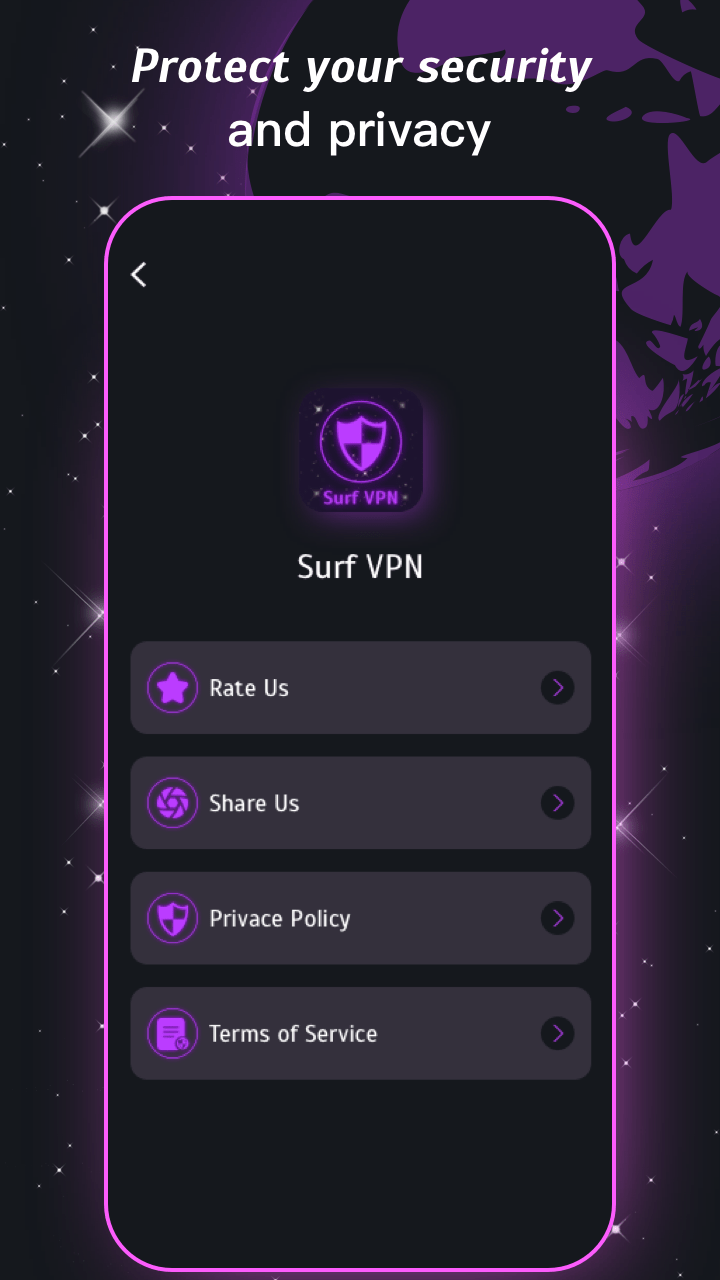 Surf VPN هو رفيقك الأمثل لتعزيز تواجدك على الإنترنت وضمان بقاء خصوصيتك سليمة. في عصر أصبح فيه الأمان عبر الإنترنت أمرًا بالغ الأهمية، يقدم تطبيق VPN (الشبكة الخاصة الافتراضية) لدينا مجموعة من الميزات المصممة لحماية أنشطتك الرقمية وحماية بياناتك من أعين المتطفلين.يستخدم Surf VPN أحدث تقنيات التشفير لإنشاء نفق آمن حول اتصالك بالإنترنت. وهذا يضمن أن تظل أنشطتك عبر الإنترنت خاصة ومحمية من التهديدات السيبرانية والمتسللين ومتطفلي البيانات.