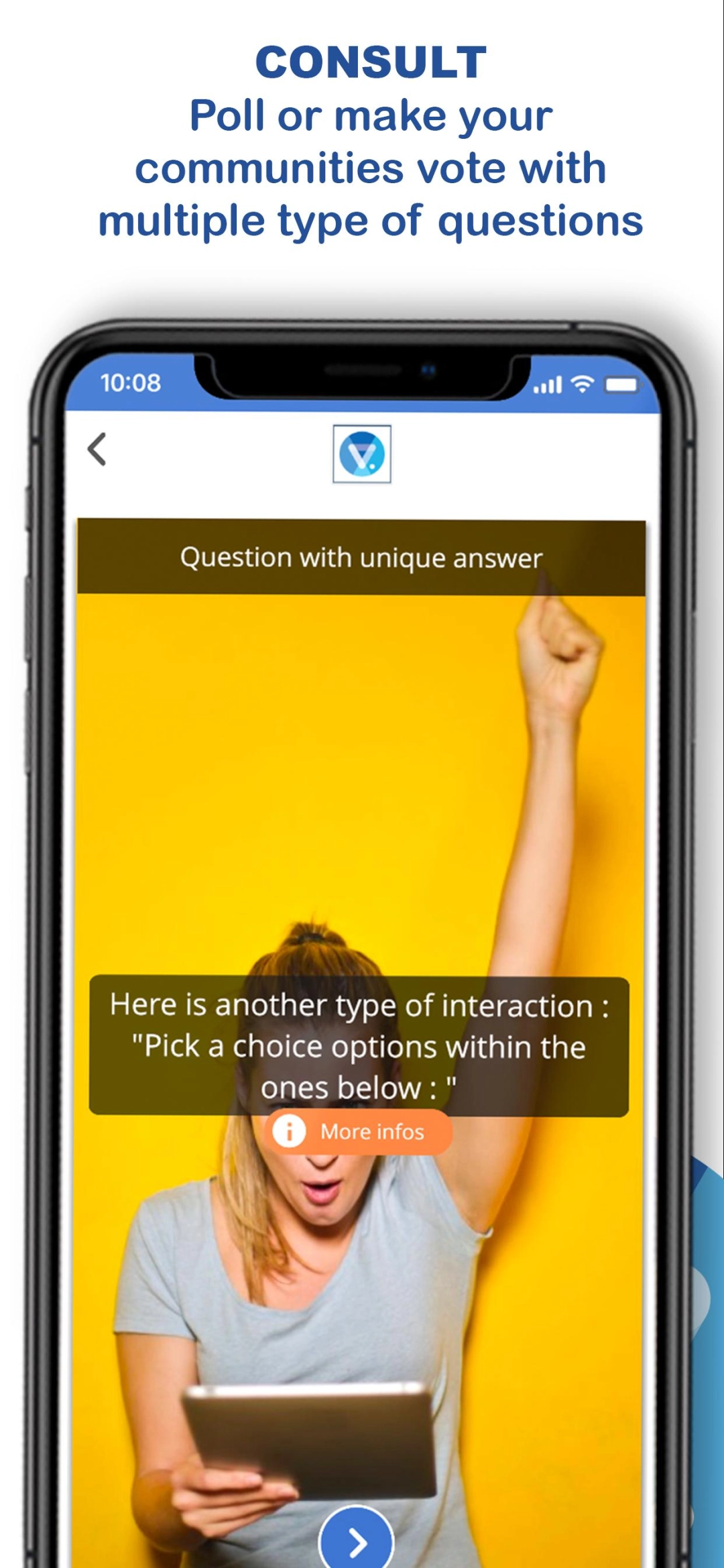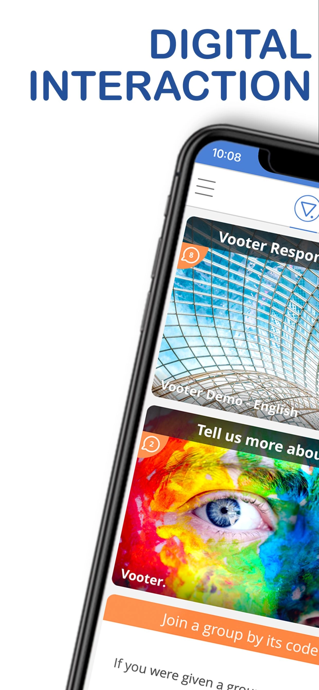 You need to interact with a group of people ? <br>Using Vooter, you can inform, ask questions, organize polls and votes. <br><br>The participants will be able to create an account and answer from either the Vooter mobile app or the vooter website. <br><br